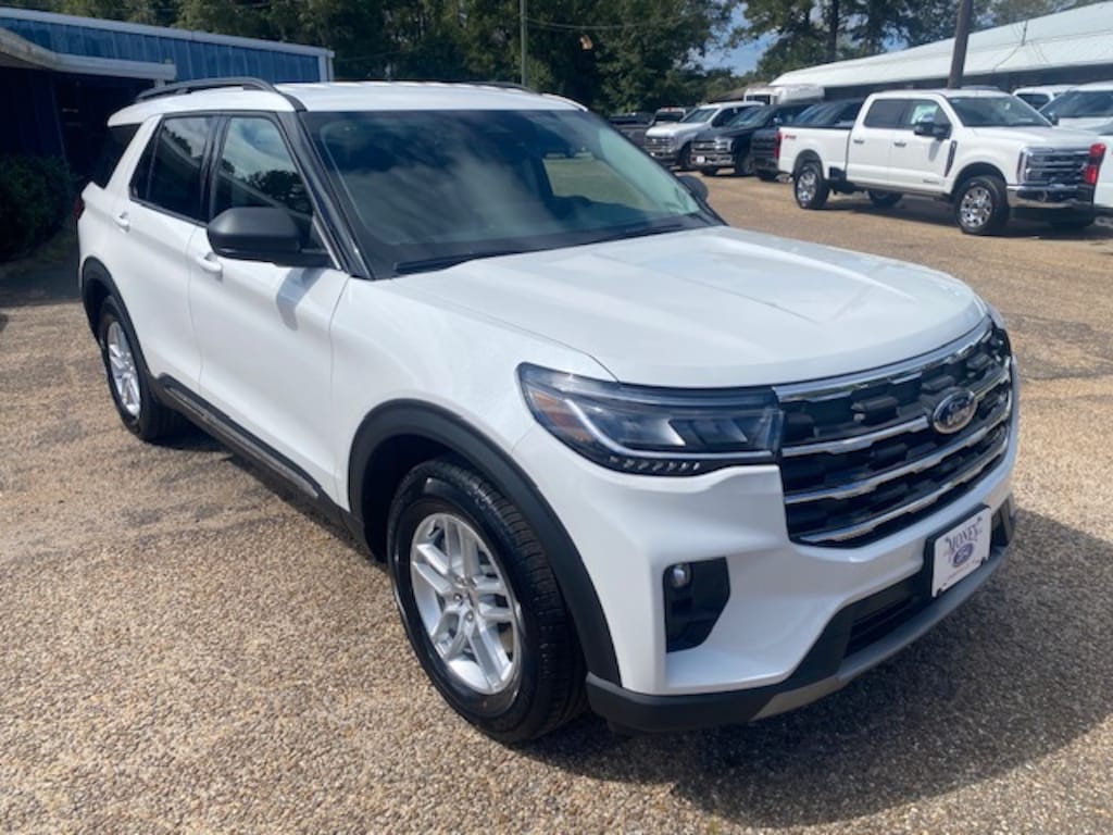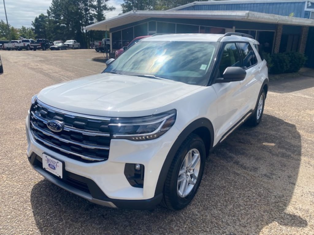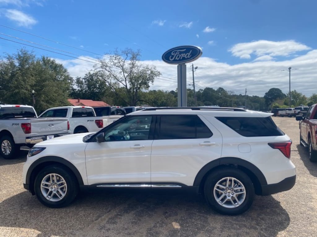 Star White Metallic Tri-Coat 2025 Ford Explorer Active RWD 10-Speed Automatic 2.3L EcoBoost I-4 3.58 Non-Limited Slip Rear Axle, 3rd row seats: bench, 4-Wheel Disc Brakes, 6 Speakers, ABS brakes, Active Comfort Package, Air Conditioning, Alloy wheels, AM/FM radio: SiriusXM with 360L, AM/FM Stereo, Apple CarPlay/Android Auto, Auto High-beam Headlights, Automatic temperature control, Brake assist, Bumpers: body-color, Compass, Delay-off headlights, Driver door bin, Driver vanity mirror, Dual front impact airbags, Dual front side impact airbags, Electronic Stability Control, Emergency communication system: 911 Assist, Equipment Group 200A Standard Package, Exterior Parking Camera Rear, Four wheel independent suspension, Front & 2nd Rows Floor Liners w/o Carpet Floor Mats, Front anti-roll bar, Front Bucket Seats, Front Center Armrest, Front dual zone A/C, Front Fascia, Front License Plate Bracket, Front reading lights, Fully automatic headlights, Heated ActiveX Seating Material Captain's Chairs, Heated door mirrors, Heated front seats, Heated Steering Wheel, Illuminated entry, Knee airbag, Leather steering wheel, Low tire pressure warning, Navigation System, Occupant sensing airbag, Outside temperature display, Overhead airbag, Overhead console, Panic alarm, Passenger door bin, Passenger vanity mirror, Power door mirrors, Power driver seat, Power Liftgate, Power passenger seat, Power steering, Power windows, Rear air conditioning, Rear anti-roll bar, Rear reading lights, Rear window defroster, Rear window wiper, Remote keyless entry, Remote Start System, Second Row HVAC Controls, SecuriCode Keyless Entry Keypad, Security system, Speed control, Speed-sensing steering, Speed-Sensitive Wipers, Split folding rear seat, Spoiler, Steering wheel mounted audio controls, Tachometer, Telescoping steering wheel, Tilt steering wheel, Traction control, Trip computer, Unique Heated Cloth Captain's Chairs, Universal Garage Door Opener (UGDO), Variably intermittent wipers, Wheels: 18" Sparkle Silver-Painted Aluminum.