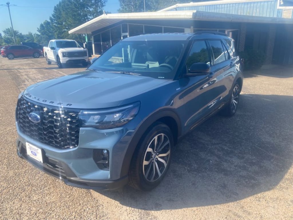 Vapor Blue Metallic 2025 Ford Explorer ST-Line RWD 10-Speed Automatic 2.3L EcoBoost I-4 10 Speakers, 110V/150W AC Power Outlet, 2nd Row Heated Seats, 3.58 Non-Limited Slip Rear Axle, 3rd row seats: bench, 4-Wheel Disc Brakes, ABS brakes, Air Conditioning, Alloy wheels, Ambient Lighting, Apple CarPlay/Android Auto, Auto High-beam Headlights, Auto-Dimming Interior Rear-View Mirror, Automatic temperature control, Brake assist, Bumpers: body-color, Compass, Delay-off headlights, Driver door bin, Driver vanity mirror, Dual front impact airbags, Dual front side impact airbags, Electronic Stability Control, Emergency communication system: 911 Assist, Equipment Group 300A Standard Package, Exterior Parking Camera Rear, Four wheel independent suspension, Front anti-roll bar, Front Bucket Seats, Front Center Armrest, Front dual zone A/C, Front fog lights, Front License Plate Bracket, Front reading lights, Fully automatic headlights, Garage door transmitter, Heated door mirrors, Heated front seats, Heated steering wheel, Heated Unique Cloth Captain's Chairs, Illuminated entry, Knee airbag, Leather steering wheel, Low tire pressure warning, Memory Driver's Seat, Navigation System, Occupant sensing airbag, Outside temperature display, Overhead airbag, Overhead console, Panic alarm, Passenger door bin, Passenger vanity mirror, Power door mirrors, Power driver seat, Power Liftgate, Power passenger seat, Power steering, Power windows, Power-Folding Sideview Mirrors w/Autofold, Premium Package, Radio: B&O Sound System by Bang & Olufsen, Rain-Sensing Wipers (Front Only), Rear air conditioning, Rear anti-roll bar, Rear reading lights, Rear window defroster, Rear window wiper, Remote keyless entry, SecuriCode Keyless Entry Keypad, Security system, Speed control, Speed-sensing steering, Speed-Sensitive Wipers, Split folding rear seat, Spoiler, Steering wheel mounted audio controls, Tachometer, Telescoping steering wheel, Tilt steering wheel, Traction control, Trip computer, Variably intermittent wipers, Wheels: 20" Ebony-Painted Machined Aluminum, Wireless Charging Pad.