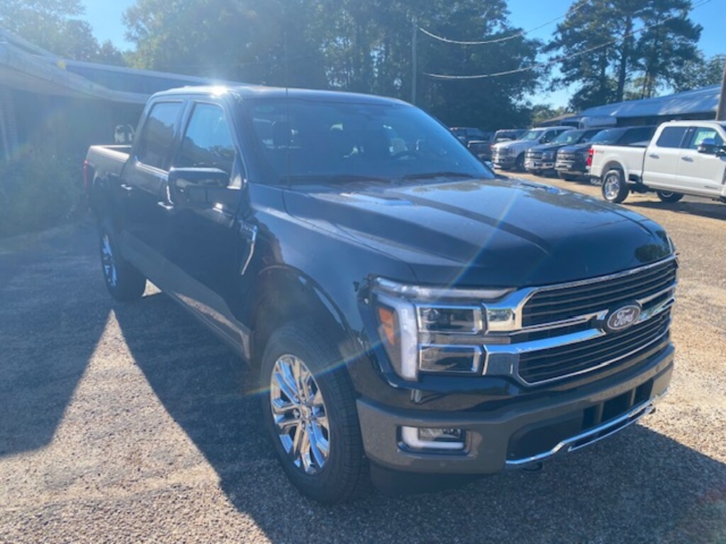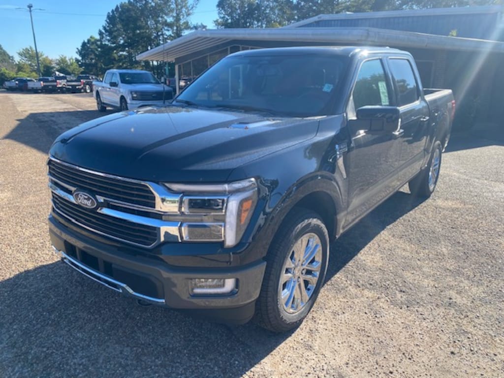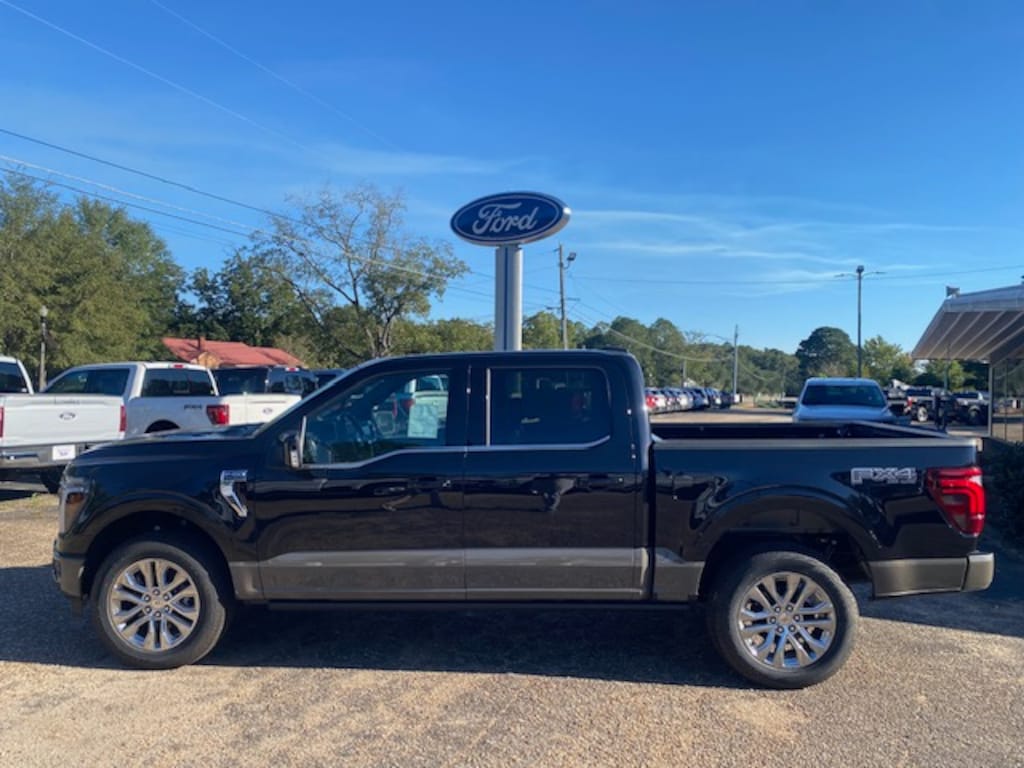 Agate Black Metallic 2025 Ford F-150 King Ranch 4WD 10-Speed Automatic 3.5L V6 EcoBoost 4WD, 14 Speakers, 4-Wheel Disc Brakes, ABS brakes, Adjustable pedals, Air Conditioning, Alloy wheels, AM/FM radio: SiriusXM with 360L, Auto High-beam Headlights, Auto tilt-away steering wheel, Auto-dimming door mirrors, Auto-dimming Rear-View mirror, Automatic temperature control, Brake assist, Chrome wheels, Compass, Delay-off headlights, Driver door bin, Driver vanity mirror, Dual front impact airbags, Dual front side impact airbags, Electronic Locking w/3.55 Axle Ratio, Electronic Stability Control, Emergency communication system: SYNC 4 911 Assist, Front anti-roll bar, Front Bucket Seats, Front Center Armrest, Front dual zone A/C, Front fog lights, Front reading lights, Front wheel independent suspension, Fully automatic headlights, Garage door transmitter, Genuine wood dashboard insert, Heads-Up Display, Heated door mirrors, Heated front seats, Heated rear seats, Heated steering wheel, Illuminated entry, King Ranch Multicontour Leather Bucket Seats, Leather steering wheel, Low tire pressure warning, Memory seat, Navigation system: Connected Navigation, Occupant sensing airbag, Outside temperature display, Overhead airbag, Overhead console, Panic alarm, Passenger door bin, Passenger vanity mirror, Pedal memory, Power door mirrors, Power driver seat, Power moonroof, Power passenger seat, Power steering, Power windows, Radio data system, Radio: B&O Unleashed Sound System by Bang & Olufsen, Rain sensing wipers, Rear reading lights, Rear seat center armrest, Rear step bumper, Rear window defroster, Remote keyless entry, Security system, Speed control, Split folding rear seat, Steering wheel memory, Steering wheel mounted audio controls, SYNC 4 w/Enhanced Voice Recognition, Tachometer, Telescoping steering wheel, Tilt steering wheel, Traction control, Trip computer, Turn signal indicator mirrors, Variably intermittent wipers, Ventilated front seats, Voltmeter, Wheels: 20" Chrome-Like PVD, 4WD.