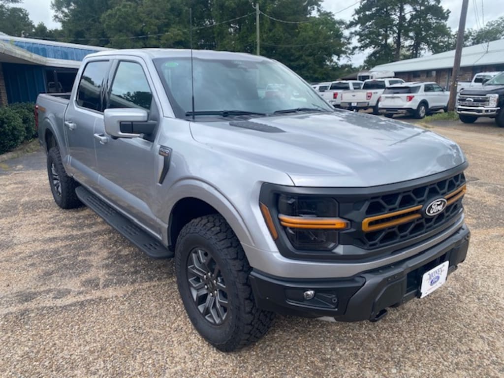 Iconic Silver Metallic 2025 Ford F-150 Tremor 4WD 10-Speed Automatic 5.0L V8 4WD, 4-Wheel Disc Brakes, 8 Speakers, ABS brakes, Adjustable pedals, Air Conditioning, Alloy wheels, AM/FM radio: SiriusXM with 360L, Auto High-beam Headlights, Auto-dimming door mirrors, Auto-dimming Rear-View mirror, Automatic temperature control, Brake assist, Bumpers: body-color, Compass, Delay-off headlights, Driver door bin, Driver vanity mirror, Dual front impact airbags, Dual front side impact airbags, Electronic Locking w/3.73 Axle Ratio, Electronic Stability Control, Emergency communication system: SYNC 4 911 Assist, Front anti-roll bar, Front Bucket Seats, Front Center Armrest, Front dual zone A/C, Front fog lights, Front reading lights, Front wheel independent suspension, Fully automatic headlights, GVWR: 7,100 lbs Payload Package, Heated door mirrors, Heated front seats, Illuminated entry, Low tire pressure warning, Navigation system: Connected Navigation, Occupant sensing airbag, Outside temperature display, Overhead airbag, Overhead console, Panic alarm, Passenger door bin, Passenger vanity mirror, Power door mirrors, Power driver seat, Power passenger seat, Power steering, Power windows, Radio data system, Radio: B&O Sound System by Bang & Olufsen, Rear reading lights, Rear step bumper, Rear window defroster, Remote keyless entry, Security system, Speed control, Split folding rear seat, Steering wheel mounted audio controls, SYNC 4 w/Enhanced Voice Recognition, Tachometer, Telescoping steering wheel, Tilt steering wheel, Traction control, Trip computer, Turn signal indicator mirrors, Unique Sport Cloth 40/Console/40 Power Front Seat, Variably intermittent wipers, Voltmeter, Wheels: 18" Alloy w/Dark Matte Finish, 4WD.