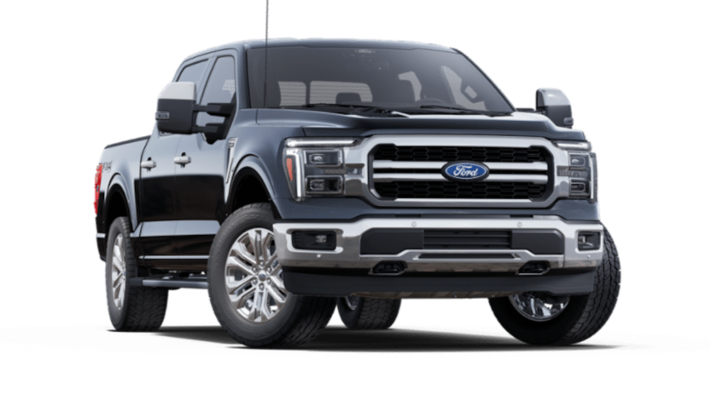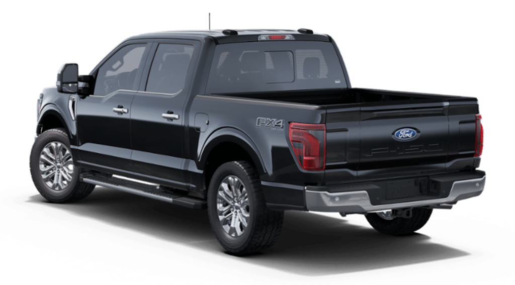 Agate Black Metallic 2025 Ford F-150 Lariat 4WD 10-Speed Automatic 5.0L V8 4WD, 4 Pickup Box Tie-Down Plates, 4-Wheel Disc Brakes, 4x4 FX4 Off-Road Bodyside Decal, 6" Angular Bright Anodized Step Bar, 6" Extended Running Boards, 8 Speakers, ABS brakes, ActiveX Trimmed Bucket Seats, Adjustable pedals, Air Conditioning, Alloy wheels, AM/FM radio: SiriusXM with 360L, Auto High-beam Headlights, Auto-dimming door mirrors, Auto-dimming Rear-View mirror, Automatic temperature control, Bed Utility Package, BlueCruise Equipped (1-Year Plan), Brake assist, Bumpers: chrome, Chrome wheels, Compass, Console Worksurface, Delay-off headlights, Driver door bin, Driver vanity mirror, Dual front impact airbags, Dual front side impact airbags, Electronic Stability Control, Emergency communication system: SYNC 4 911 Assist, Equipment Group 501A Mid, Front anti-roll bar, Front Bucket Seats, Front Center Armrest, Front dual zone A/C, Front fog lights, Front License Plate Bracket, Front reading lights, Front wheel independent suspension, Fully automatic headlights, FX4 Off-Road Package, Garage door transmitter, Heated door mirrors, Heated front seats, Heated steering wheel, Hill Descent Control, Illuminated Driver & Passenger Visors, Illuminated entry, LED Box Lighting, Low tire pressure warning, Memory seat, Mobile Office Package, Monotube Rear Shocks, Navigation system: Connected Navigation, Occupant sensing airbag, Off-Road Tuned Front Shock Absorbers, Outside temperature display, Overhead airbag, Overhead console, Panic alarm, Partitioned Lockable Rear Storage, Passenger door bin, Passenger vanity mirror, Pedal memory, Power door mirrors, Power driver seat, Power passenger seat, Power steering, Power Tailgate, Power Telescoping/Glass/Folding Trailer Tow Mirrors, Power windows, Power-Sliding Rear Window, Pro Access Tailgate, Radio data system, Radio: B&O Sound System by Bang & Olufsen, Rain sensing wipers, Rear reading lights, Rear seat center armrest, Rear step bumper, Rear window defroster, Remote keyless entry, Rock Crawl Mode, Security system, Speed control, Split folding rear seat, Steering wheel mounted audio controls, SYNC 4 w/Enhanced Voice Recognition, Tachometer, Telescoping steering wheel, Tilt steering wheel, Tough Bed Spray-In Bedliner, Tow/Haul Package, Traction control, Tray Style Floor Liner w/o Carpet Mats, Trip computer, Turn signal indicator mirrors, Variably intermittent wipers, Ventilated front seats, Voltmeter, Wheel Well Liner, Wheels: 18" Chrome-Like PVD, Wheels: 20" Chrome-Like PVD, Wireless Charging, 4WD.