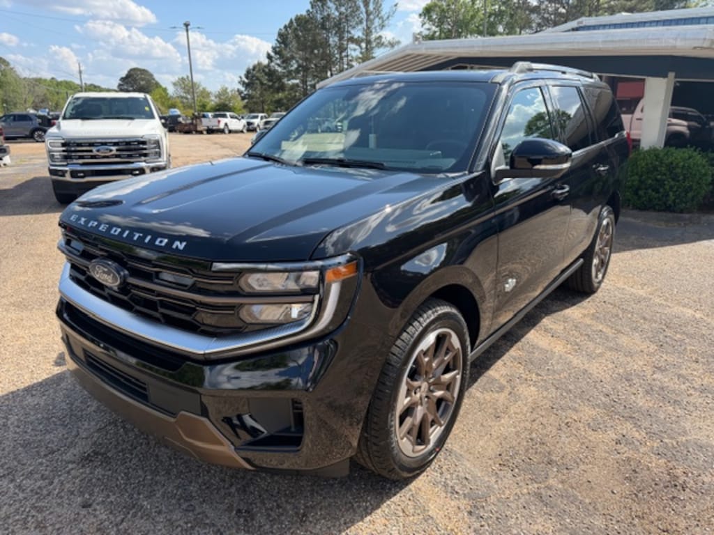 Agate Black Metallic 2026 Ford Expedition King Ranch 4WD 10-Speed Automatic EcoBoost 3.5L V6 GTDi DOHC 24V Twin Turbocharged 4WD, 22 Speakers, 3.73 Axle Ratio, 3rd row seats: split-bench, 4-Wheel Disc Brakes, ABS brakes, Adaptive suspension, Adjustable pedals, Air Conditioning, Alloy wheels, AM/FM radio: SiriusXM with 360L, Apple CarPlay/Android Auto, Auto High-beam Headlights, Auto-dimming door mirrors, Auto-dimming Rear-View mirror, Automatic temperature control, Brake assist, Bumpers: body-color, Compass, Delay-off headlights, Digital Device Holder, Driver door bin, Driver vanity mirror, Dual front impact airbags, Dual front side impact airbags, Electronic Stability Control, Emergency communication system: 911 Assist, Equipment Group 400A, Exterior Parking Camera Rear, Ford Connectivity Package (1-Time Purchase), Ford Connectivity Package (1-Year Included), Ford Digital Experience, Four wheel independent suspension, Front anti-roll bar, Front Bucket Seats, Front Center Armrest, Front dual zone A/C, Front License Plate Bracket, Front reading lights, Fully automatic headlights, Garage door transmitter, Genuine wood dashboard insert, Genuine wood door panel insert, Heated door mirrors, Heated front seats, Heated rear seats, Heated steering wheel, Heated/Ventilated Premium Del Rio Leather Front Captain's Chairs, Illuminated entry, Leather steering wheel, Low tire pressure warning, Memory seat, Navigation System, Occupant sensing airbag, Outside temperature display, Overhead airbag, Overhead console, Panic alarm, Passenger door bin, Passenger vanity mirror, Pedal memory, Power door mirrors, Power driver seat, Power moonroof: Vista Roof, Power passenger seat, Power steering, Power windows, Radio data system, Radio: B&O Unleashed Sound System by Bang & Olufsen, Rain sensing wipers, Rear air conditioning, Rear anti-roll bar, Rear reading lights, Rear window defroster, Rear window wiper, Rear-Seat Entertainment, Reclining 3rd row seat, Remote keyless entry, Security system, SiriusXM with 360L, SiriusXM with 360L (3-Year Plan), Speed control, Speed-sensing steering, Speed-Sensitive Wipers, Split folding rear seat, Spoiler, Steering wheel memory, Steering wheel mounted audio controls, Tachometer, Telescoping steering wheel, Tilt steering wheel, Traction control, Trip computer, Turn signal indicator mirrors, Variably intermittent wipers, Ventilated front seats, Voltmeter, Wheels: 22" x 9.0" Diamond Cut Machined Face Aluminum, 4WD.