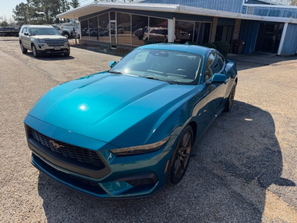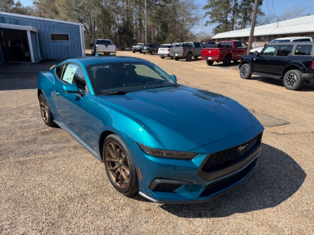 Adriatic Blue Metallic 2026 Ford Mustang EcoBoost RWD 10-Speed Automatic EcoBoost 2.3L I4 GTDi DOHC Turbocharged VCT 1st Row Carpeted Black Floor Mats, 4-Wheel Disc Brakes, ABS brakes, Air Conditioning, Alloy wheels, AM/FM Stereo, Auto High-beam Headlights, Automatic temperature control, Brake assist, Bronze Appearance Package, Bumpers: body-color, Compass, Delay-off headlights, Driver door bin, Driver vanity mirror, Dual front impact airbags, Dual front side impact airbags, Electronic Stability Control, Emergency communication system: 911 Assist, Exterior Parking Camera Rear, Four wheel independent suspension, Front anti-roll bar, Front Bucket Seats, Front Center Armrest, Front dual zone A/C, Front reading lights, Fully automatic headlights, Illuminated entry, Knee airbag, Leather Shift Knob, Low tire pressure warning, Occupant sensing airbag, Outside temperature display, Overhead airbag, Overhead console, Panic alarm, Passenger door bin, Passenger vanity mirror, Power door mirrors, Power steering, Power windows, Premium Floor Liners Front and Rear (with Carpet Mats), Radio data system, Rain sensing wipers, Rear anti-roll bar, Rear Parking Sensors, Rear window defroster, Remote keyless entry, Sinister Bronze Front and Rear Pony Badges, Speed control, Speed-sensing steering, Speed-Sensitive Wipers, Split folding rear seat, Sport steering wheel, Steering wheel mounted audio controls, SYNC 4, Tachometer, Telescoping steering wheel, Tilt steering wheel, Traction control, Trip computer, Variably intermittent wipers, Voltmeter, Wheels: 18" x 8" Painted Shadow Silver Cast Aluminum, Wheels: 19" x 8.5" Sinister Bronze Painted Aluminum.